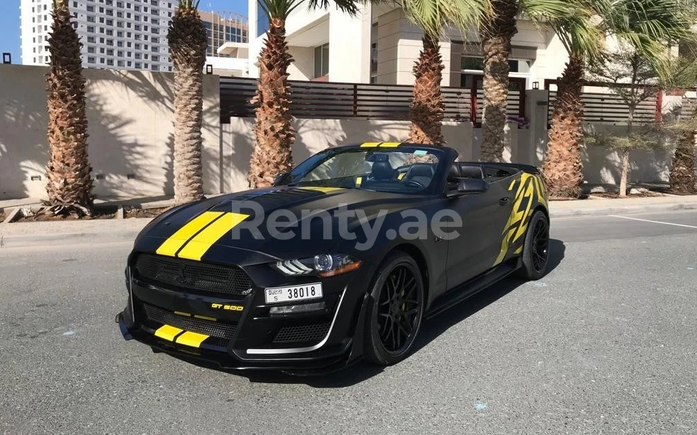 Renting a Black Ford Mustang V8 cabrio 2020 in Dubai costs 850 AED per day.