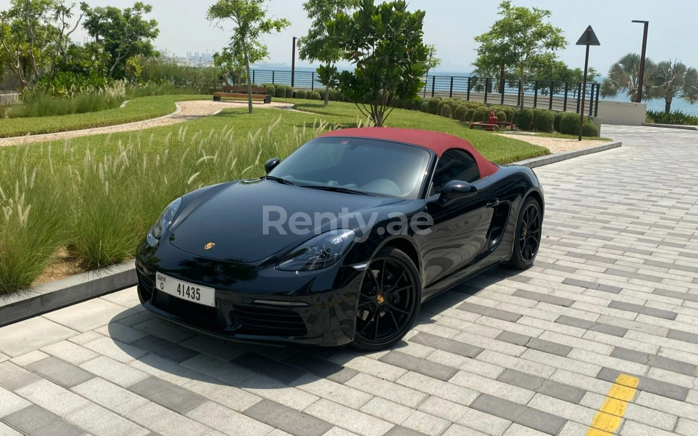 Renting a Black Porsche Boxster 718 2022 in Dubai costs 1100 AED per day.