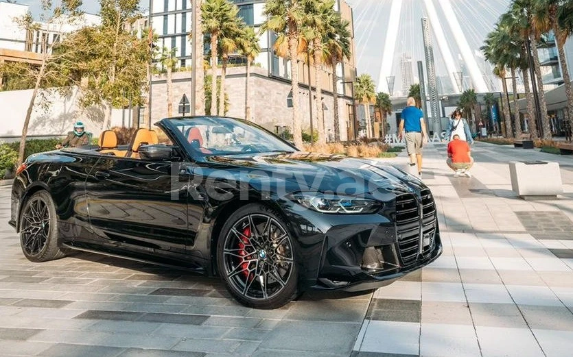 Renting a Black BMW 4M Sport Competition cabrio 2022 in Dubai costs 1800 AED per day.
