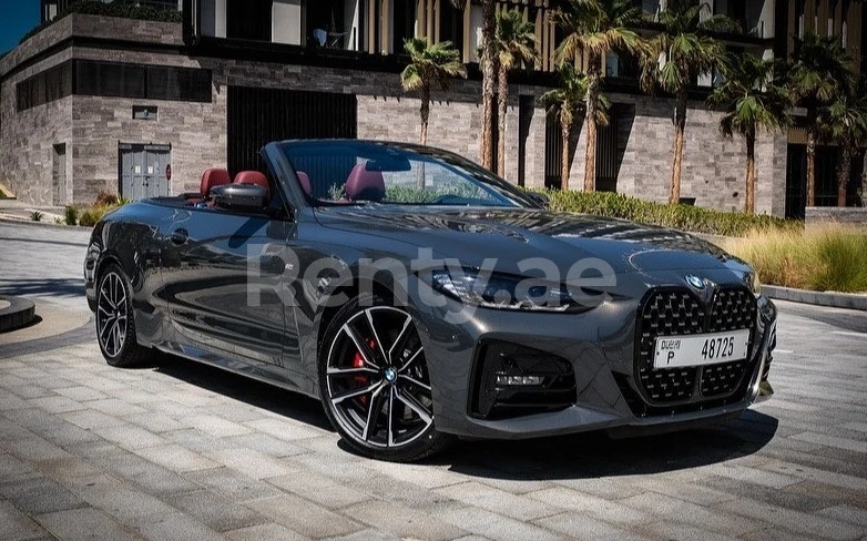 Renting a Dark Grey BMW 430i cabrio 2022 in Dubai costs 950 AED per day.